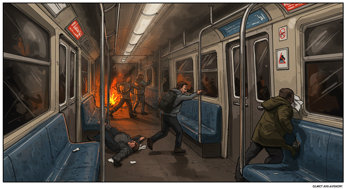 지하철 화재 시, 코와 입을 가리고 낮게 엎드려 비상문으로 이동하라!